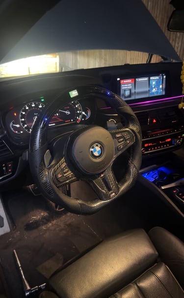 Showcasing our automotive repairs and carbon fiber steering wheels.